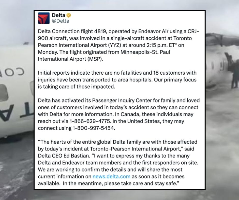 El aeropuerto Pearson, el más importante de Canadá y uno de los más transitados de Norteamérica, suspendió todas sus operaciones de despegue y aterrizaje tras el accidente. A través de sus redes sociales, el aeropuerto aseguró que «todos los pasajeros y tripulantes están localizados» y que los equipos de emergencia trabajan en la zona.