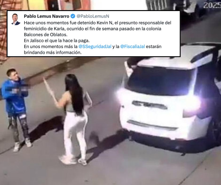 Las autoridades de Jalisco detuvieron a Kevin “N”, señalado como presunto responsable del feminicidio de Karla, una joven de 28 años que fue asesinada a balazos la madrugada del 12 de julio en la colonia Balcones de Oblatos, en Guadalajara. La información fue confirmada este lunes por el gobernador del estado, Pablo Lemus, a través de un mensaje en sus redes sociales.
