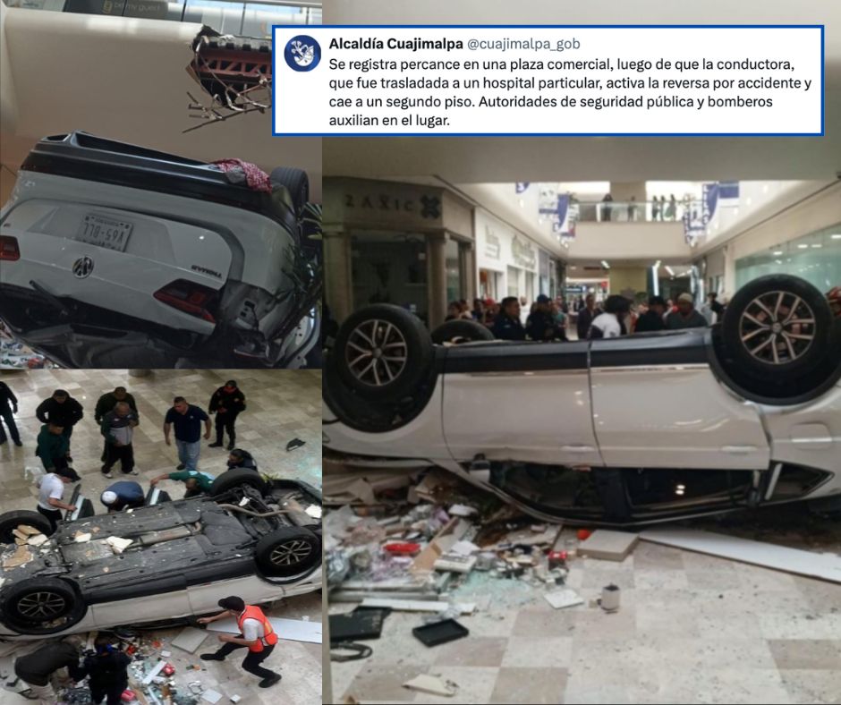 Desde la cuenta oficial de la alcaldía Cuajimalpa en X (@cuajimalpa_gob), se explicó que el accidente se originó por un error al activar la reversa. “Se registra percance en una plaza comercial, luego de que la conductora, que fue trasladada a un hospital particular, activa la reversa por accidente y cae a un segundo piso. Autoridades de seguridad pública y bomberos auxilian en el lugar”, señaló la publicación.
