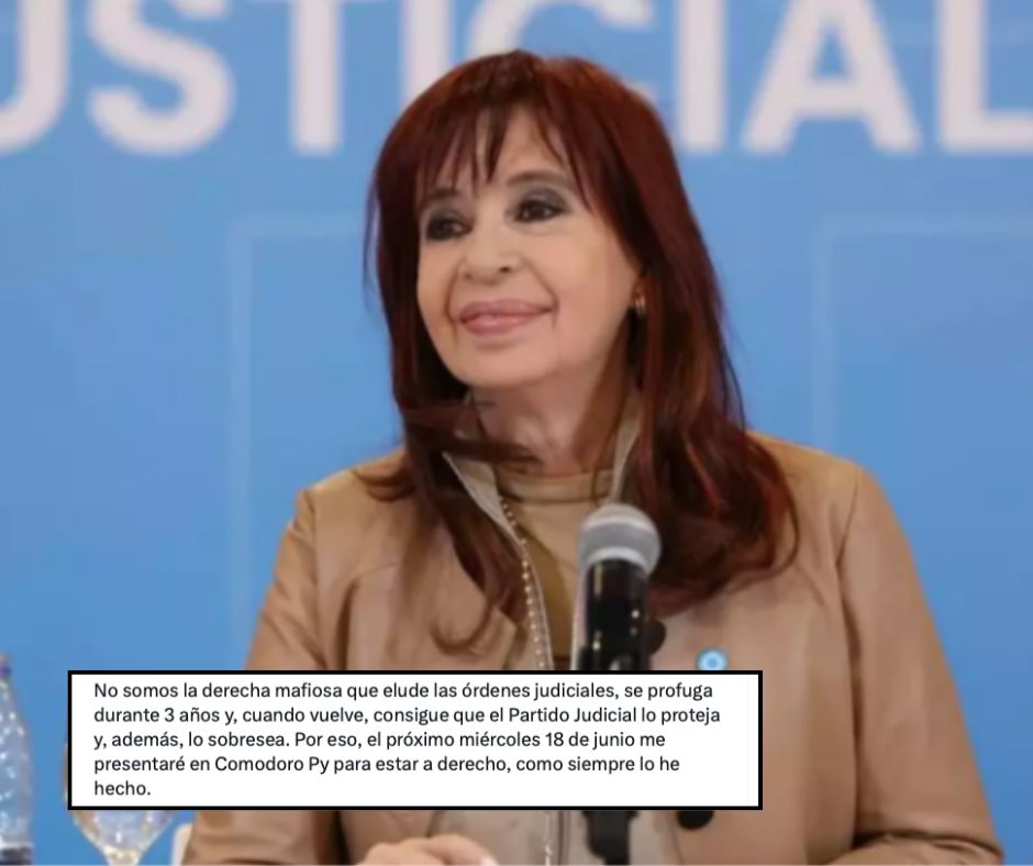 La ex presidenta, quien ocupó la jefatura de Estado entre 2007 y 2015, comunicó su decisión a través de un mensaje en la red social X. En su publicación señaló: “El próximo miércoles 18 de junio me presentaré en Comodoro Py para estar a derecho, como siempre lo he hecho”.