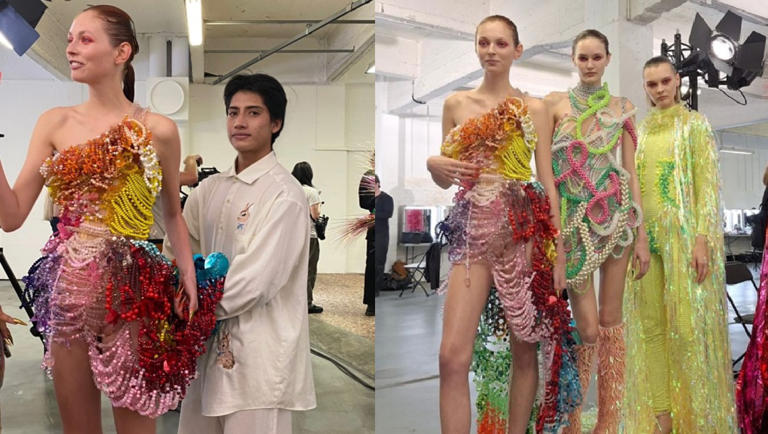Kevin Martínez, un diseñador de 23 años originario de Oaxaca, se destacó en la prestigiosa pasarela de moda en París, la más importante de Europa, gracias a su innovadora combinación de textiles y su uso distintivo de colores, pedrería y cristales.