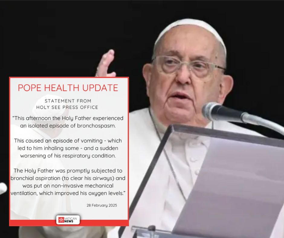El informe oficial señaló que, durante la tarde, el Papa presentó un «ataque aislado de broncoespasmo» que le provocó vómitos con inhalación, causando un deterioro repentino en su condición respiratoria. Ante esto, los médicos actuaron de inmediato, realizando una aspiración y aplicando ventilación mecánica, con una buena respuesta en el intercambio de oxígeno. A pesar de la gravedad del episodio, Francisco permaneció «vigilante y consciente», aunque su pronóstico sigue siendo «reservado».