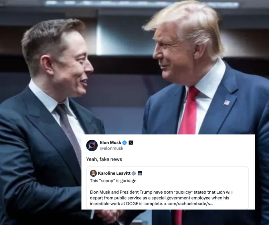 La portavoz de la Casa Blanca, Karoline Leavitt, utilizó su cuenta oficial en la red social X, para desmentir los rumores. «Esta ‘primicia’ es basura. Elon Musk y el presidente Trump han declarado públicamente que Elon dejará el servicio público como empleado especial del Gobierno cuando complete su increíble trabajo en DOGE», escribió. Musk, por su parte, reforzó el mensaje al compartir la publicación de Leavitt con la frase: «Sí, noticias falsas».