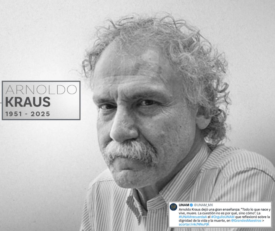 La Universidad Nacional Autónoma de México (UNAM) informó este domingo el fallecimiento del doctor Arnoldo Samuel Kraus Weisman, reconocido médico y académico especialista en bioética, a los 74 años de edad.