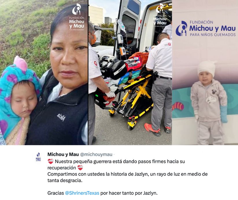 Desde el 15 de septiembre, Jazlyn permanece internada en el hospital Shriners, acompañada por su madre, en un centro de hospedaje del propio recinto médico. La menor recibe terapias físicas, ocupacionales y psicológicas como parte de su proceso integral de recuperación.
