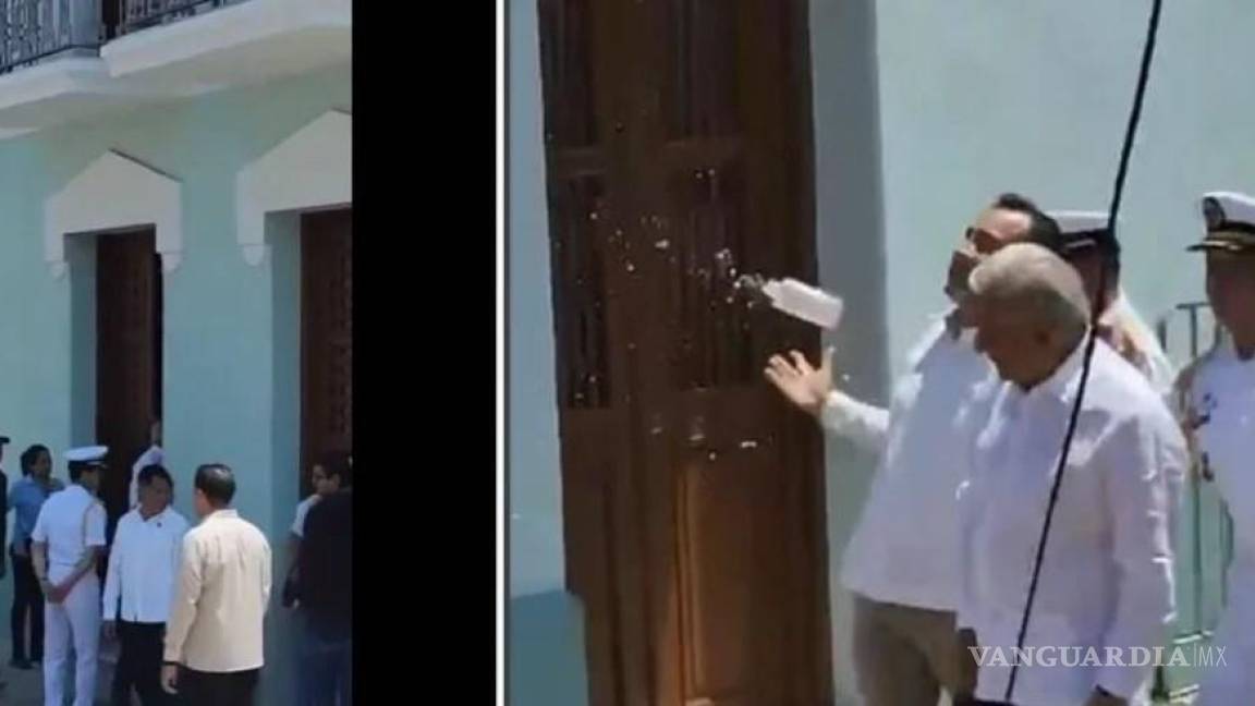 Al descender de una camioneta negra, acompañado por el gobernador de Veracruz, Cuitláhuac García, una botella de agua fue arrojada desde el grupo de manifestantes, impactando cerca de López Obrador. La seguridad presidencial reaccionó rápidamente, resguardando al mandatario y conduciéndolo al interior del edificio.