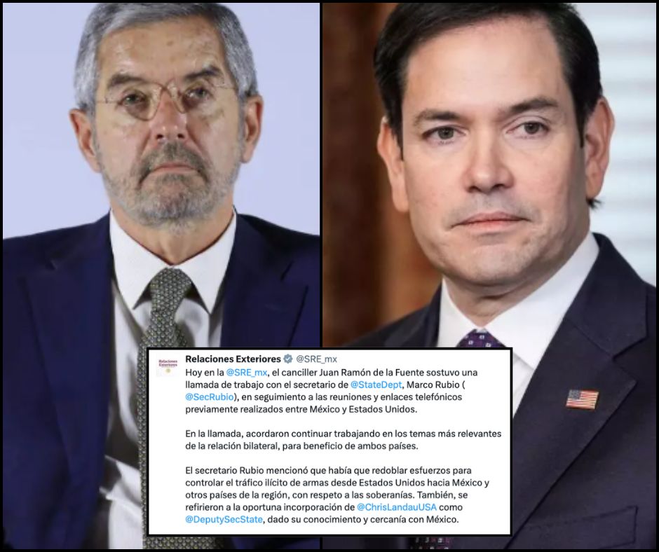 El canciller Juan Ramón de la Fuente y el secretario de Estado de Estados Unidos, Marco Rubio, sostuvieron una conversación telefónica clave para abordar temas de seguridad, migración y cooperación económica. Durante la llamada, se destacaron medidas conjuntas para fortalecer las fronteras, desmantelar cárteles y frenar el tráfico de drogas, armas y migrantes indocumentados.
