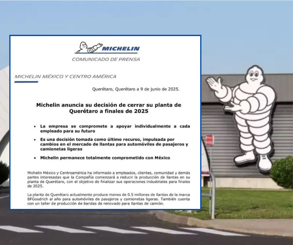 La historia de la planta de Michelin en Querétaro llega a su fin. La compañía francesa, reconocida mundialmente en la industria llantera, anunció el cierre definitivo de su fábrica ubicada en este estado mexicano, decisión que se hará efectiva al finalizar el 2025.