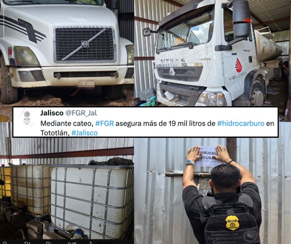 En un operativo conjunto que refleja la intensificación de los esfuerzos federales contra el robo de combustible, la Fiscalía General de la República (FGR) aseguró más de 19 mil litros de hidrocarburo en un predio ubicado en el municipio de Tototlán, Jalisco. La acción, realizada el lunes 14 de julio, no dejó personas detenidas, pero representó un paso significativo en la lucha contra este delito en el occidente del país.