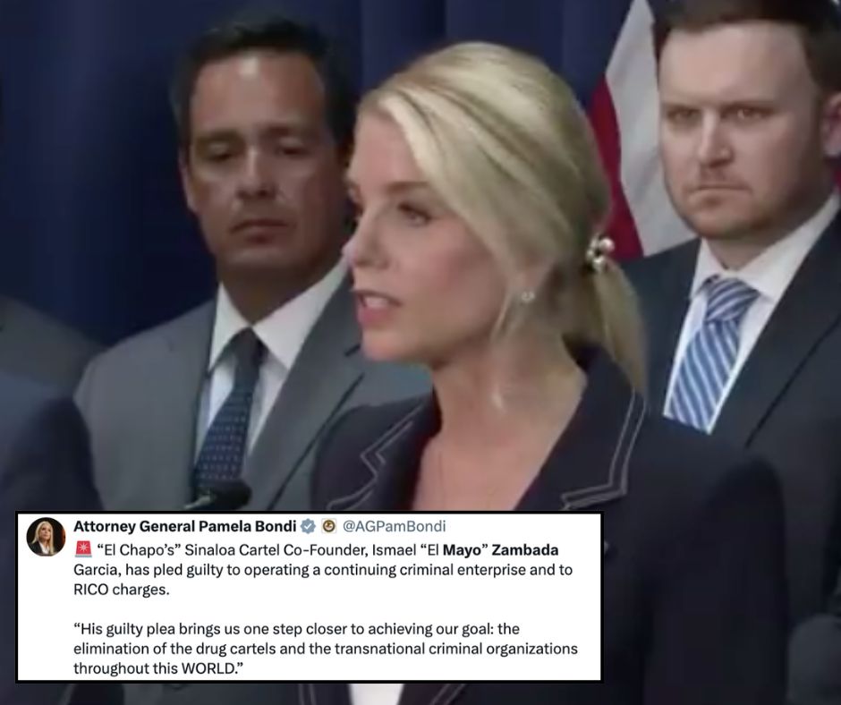 La fiscal general de Estados Unidos, Pam Bondi, celebró este lunes la declaración de culpabilidad de Ismael “El Mayo” Zambada en una corte de Nueva York y aseguró que el narcotraficante pasará el resto de sus días en una prisión federal estadounidense.