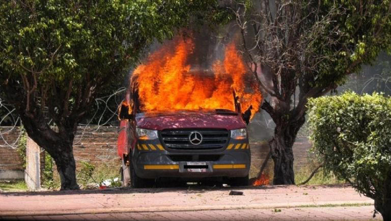 Al terminar el mitin, los manifestantes se replegaron. Un grupo de jóvenes impactó una camioneta de la empresa La Costeña contra el muro de contención del batallón y lanzaron petardos al interior. De forma preliminar, se informó que los explosivos dañaron el transformador de energía, dejando la zona sin electricidad.