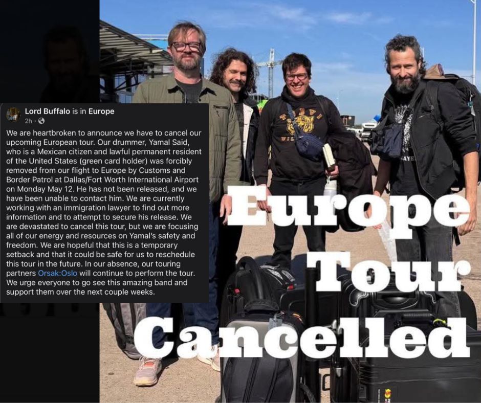 Un hecho inesperado ha sacudido al mundo del rock independiente. La agrupación estadounidense Lord Buffalo se ha visto obligada a cancelar su esperada gira por Europa tras un incidente que ha generado preocupación e indignación entre fanáticos y colegas de la escena musical. El baterista mexicano Yamil Said, integrante del grupo y residente permanente legal en Estados Unidos, fue retirado a la fuerza por agentes de Migración del aeropuerto internacional de Dallas/Fort Worth mientras la banda se disponía a abordar su vuelo rumbo a los Países Bajos.