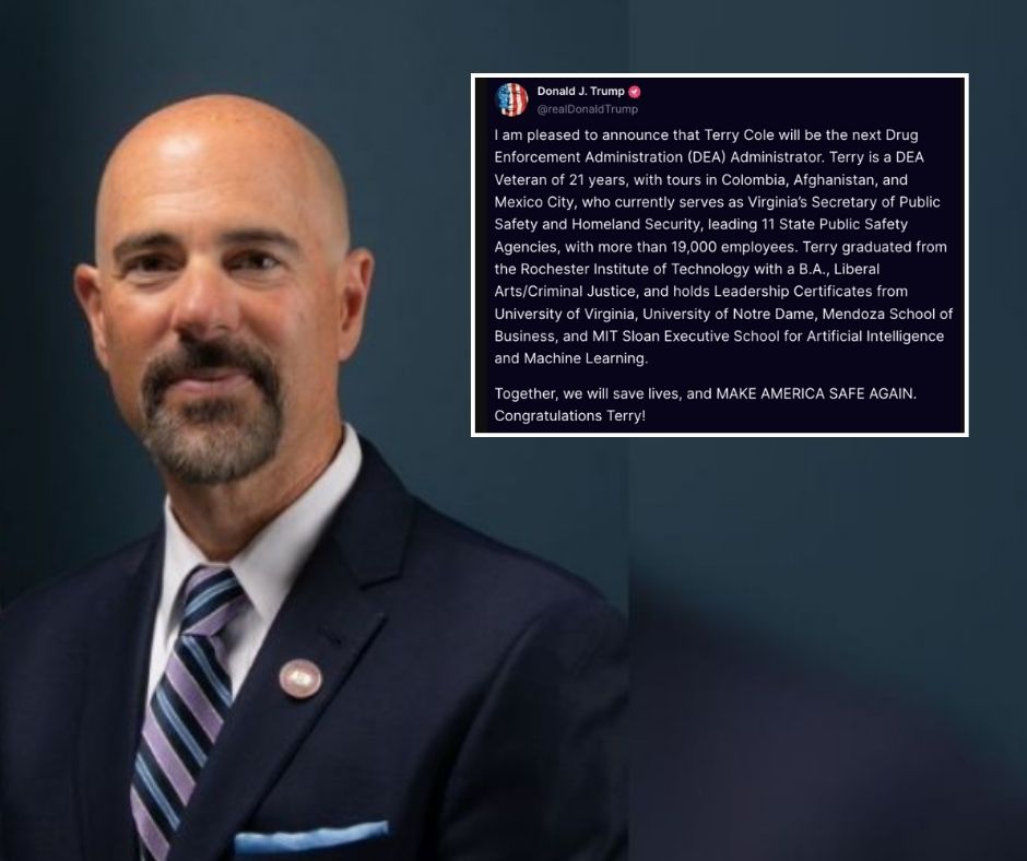 Trump realizó el anuncio a través de la red social Truth Social, destacando la experiencia de Cole en la lucha contra el narcotráfico. “Terry es un veterano de la DEA con 21 años de experiencia, con misiones en Colombia, Afganistán y Ciudad de México. Actualmente, lidera 11 agencias estatales de seguridad pública en Virginia, con más de 19,000 empleados”, escribió el mandatario.