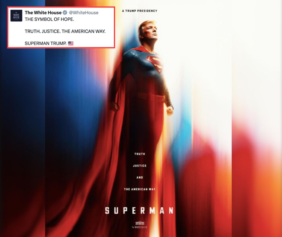La Casa Blanca sorprendió este jueves con una imagen que rápidamente se volvió viral. En su cuenta oficial de Instagram, publicó una ilustración del presidente Donald Trump caracterizado como Superman. Acompañada de las palabras “Truth”, “Justice” y “The American Way”, la imagen fue titulada con la frase “The symbol of hope”.