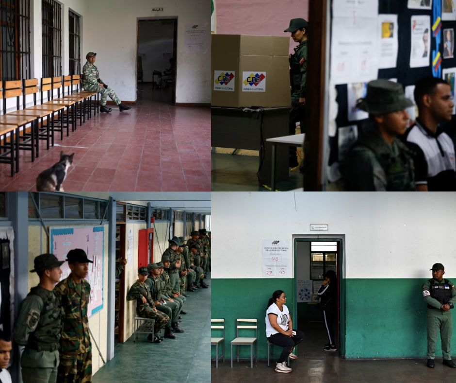 El ambiente fue desolador. En distintos centros de votación, no se escucharon las cornetas del oficialismo ni se vieron las típicas brigadas del PSUV movilizando votantes. En cambio, predominó el silencio. En muchas escuelas habilitadas para votar, la única presencia visible fue la de militares apostados tras cintas amarillas de seguridad, sin ciudadanos que custodiar.