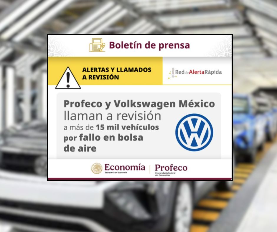Volkswagen y Profeco llaman a revisión más de 15 mil autos por fallo en bolsas de aire